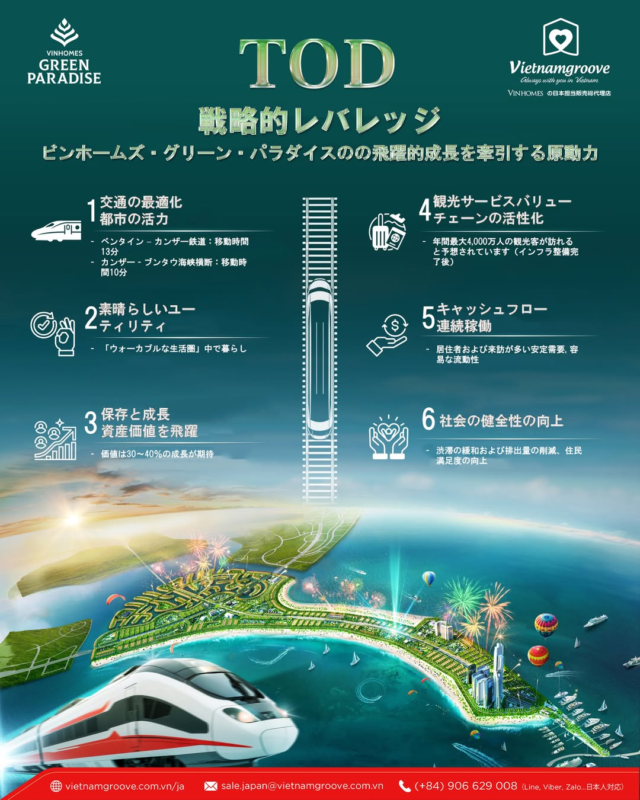 - ビンホームズ・グリーン・パラダイス・カンザー, TODに関連する高級不動産, 将来の資産価値を飛躍的に向上