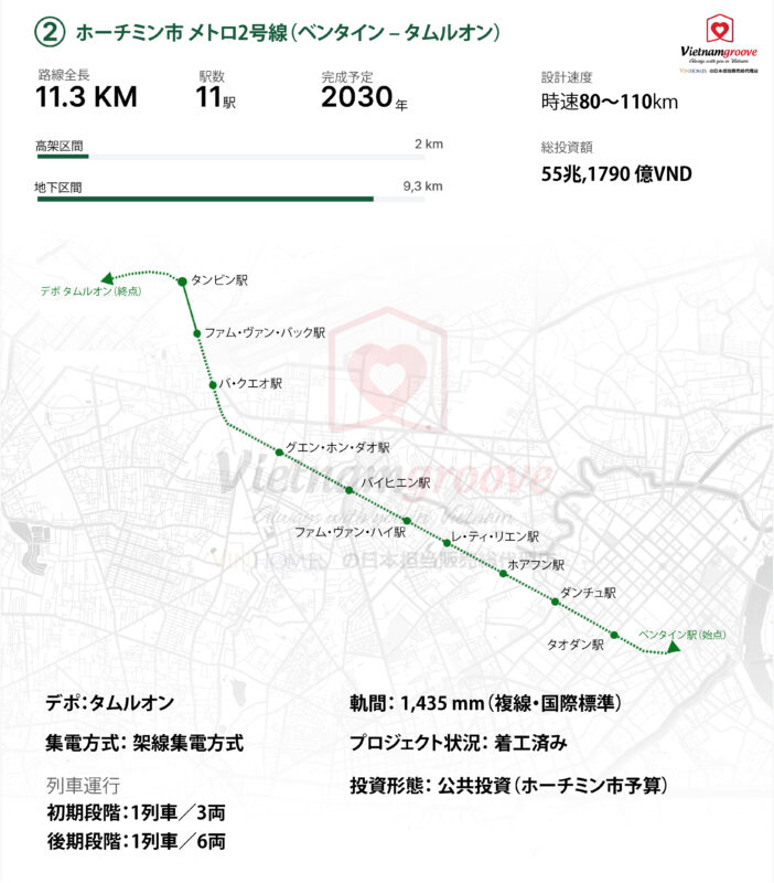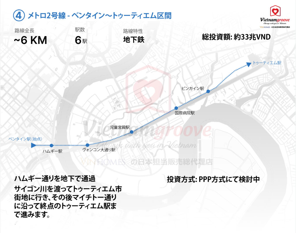 2️⃣ 🚇 地下鉄2号線(ベンタイン – タムルオン)