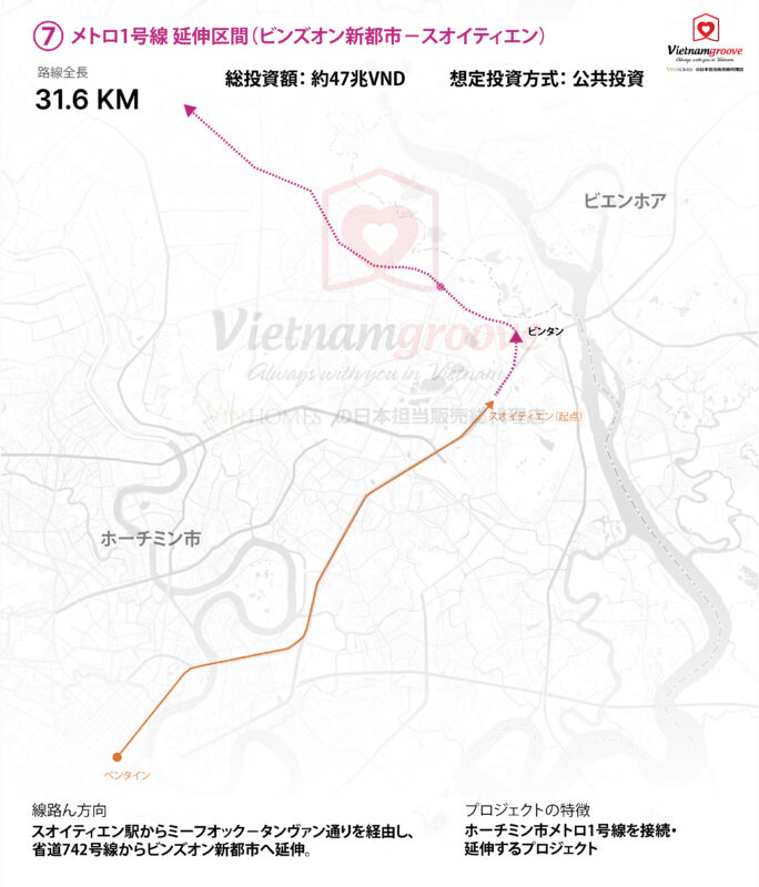 7️⃣ 🚇 メトロ1号線 延伸区間(ビンズオン新都市-スオイティエン)
