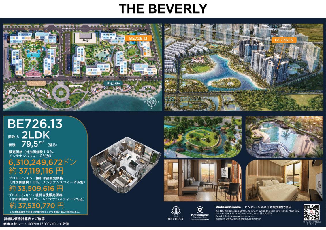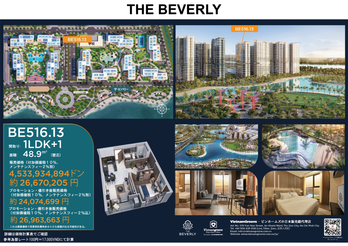 ベトナムの不動産について詳細なご相談を希望される場合は、メールでVietnamgroove 社までご連絡ください:sale.japan@vietnamgroove.com.vn。