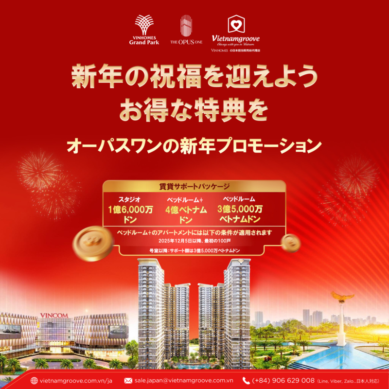 👉オーパスワン:2ベッドルームアパートメントをご購入いただくと、最大3億5,000万ベトナムドンの割引(*2025年12月5日より適用)