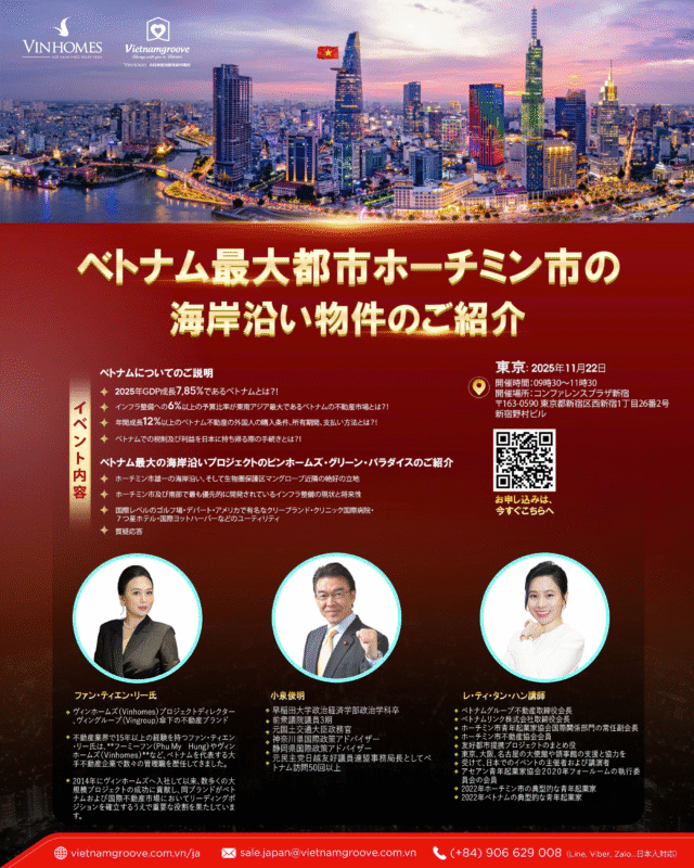 本イベントは、ベトナムのビジネス環境、経済発展のトレンド、そして新たな局面における不動産市場の力強い展望について、総合的な視点をお届けすることを目的としています。